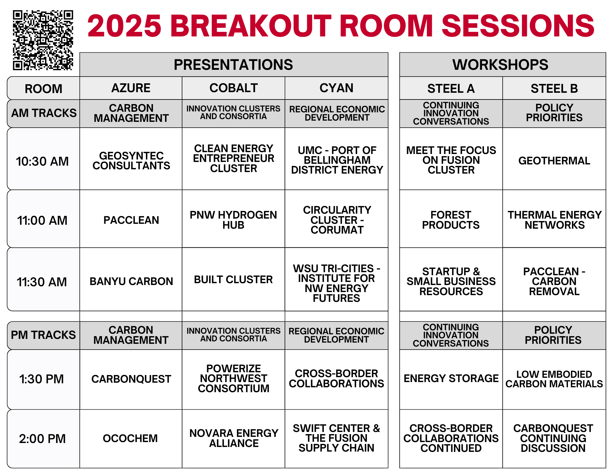 Companies and research institutions from across the U.S., Canada, and beyond will showcase their latest innovations, ideas, and initiatives during 20-minute breakout room sessions. Choose your own adventure throughout the day between 15 presentations and 10 discussion groups.