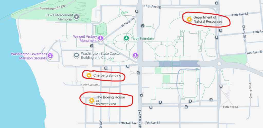 - 2:30-2:45pm | Transition to Cherberg ABC (304 15th Ave SW, Olympia, WA 98501)